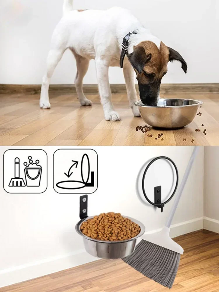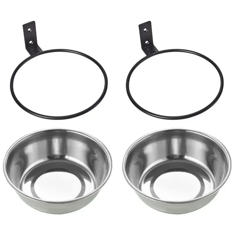 Wall Mounted Pet Bowl Stationary Dog Cage Bowl Stainless Steel Dog Cat Hanging Bowls Durable Puppy Kitten Feeder Water Food Bowl